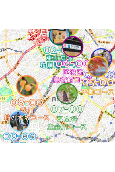 Re:Earthを用いた3Dデジタル地球儀上に、目黒区の地域情報や散歩コースがマッピングできるよう整備するとともに、ストーリーテリング機能を用いた効果的な見せ方を提案した。デジタルアーカイブをより発展させるべく、区職員の方々が自ら持続的にRe:Earthを作成〜公開していくための包括的技術支援も実施した。